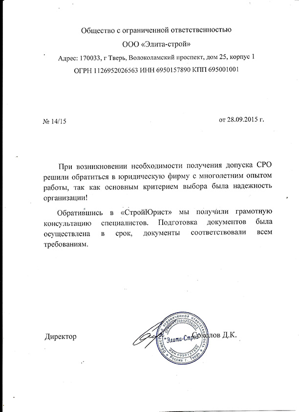Отзывы клиентов "СтройЮрист" по вступлению в СРО в Новокузнецке